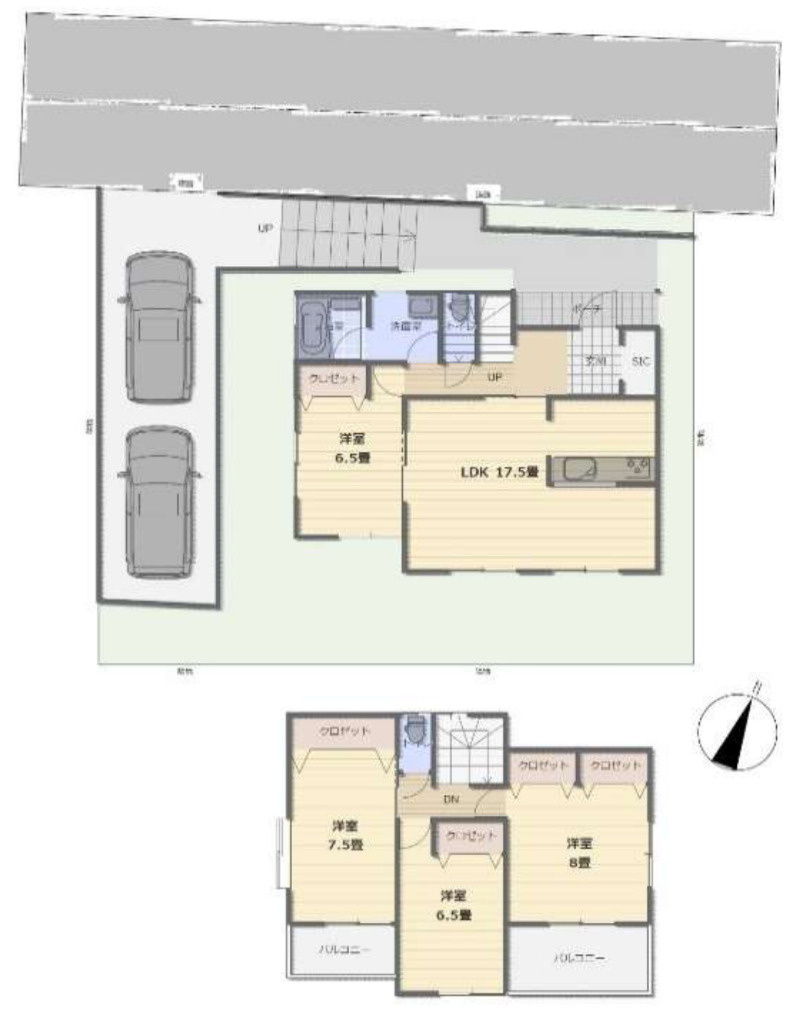 - キャンペーン / バルコニー / 都市ガス / 公営水道 / 公共下水 / 駐車3台可 / システムキッチン / カウンターキッチン / バス・トイレ別 / 洗髪洗面化粧台 / トイレ2ヶ所 / 床下収納 / ウォークインクロゼット / 食品庫